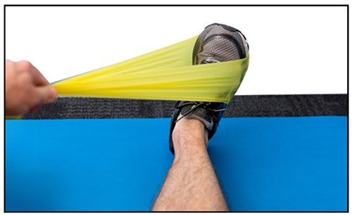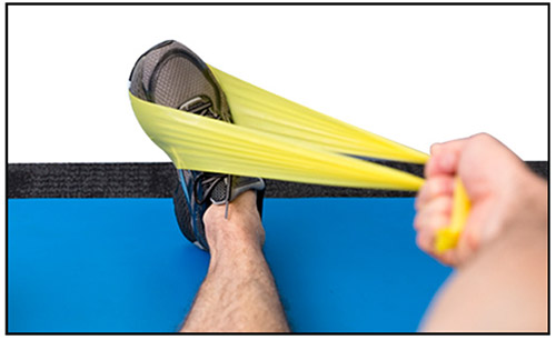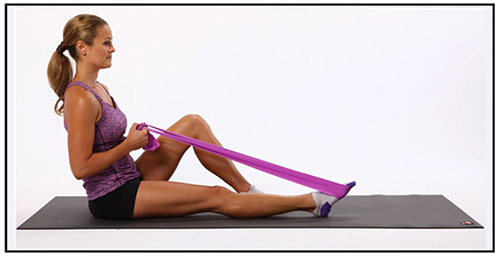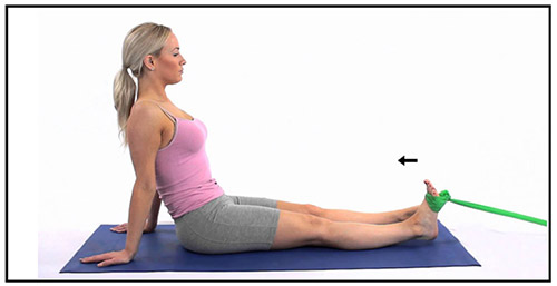 In a sitting position, place TheraBand on your foot and pull it towards you while pushing your foot down.